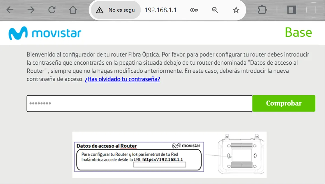 Ahora podemos acceder al router por medio de un navegador de internet, poniendo su IP en la barra de direcciones. Para poder acceder necesitamos conocer el usuario y la contraseña de acceso. A veces pueden estar en la parte trasera del router, junto a las claves del WI-FI. Si no las tenemos habrá que pedirlas a nuestro proveedor de internet.