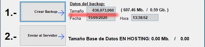Cuando termine, si todo ha ido bien, nos mostrará el tamaño de la copia, la fecha y la hora, y nos activará la opción de “Enviar al Servidor”.