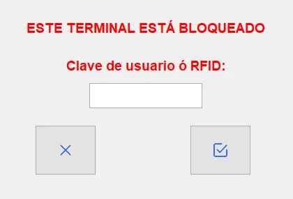 Aquí el empleado puede introducir la clave de acceso mediante el teclado en pantalla (si se usa una pantalla táctil) o acercar la tarjeta al lector de RFID conectado al ordenador.
