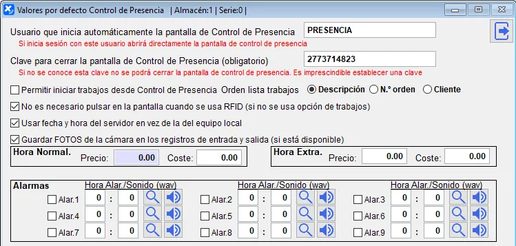 Desde esta pantalla configuraremos el comportamiento del Control de Presencia: