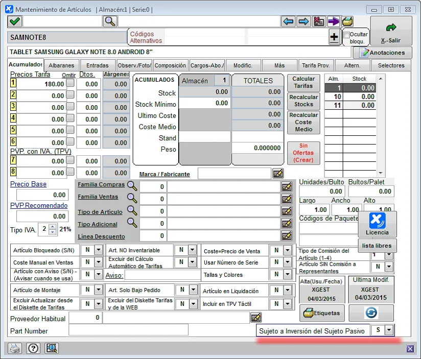 A partir de ahí, cuando creemos documentos de proveedores (peticiones de ofertas, pedidos, entradas y facturas), nos tendrá en cuenta la configuración de dichos artículos/familias para calcular los totales teniendo en cuenta que los sujetos a la inversión del sujeto pasivo están exentos de IVA.