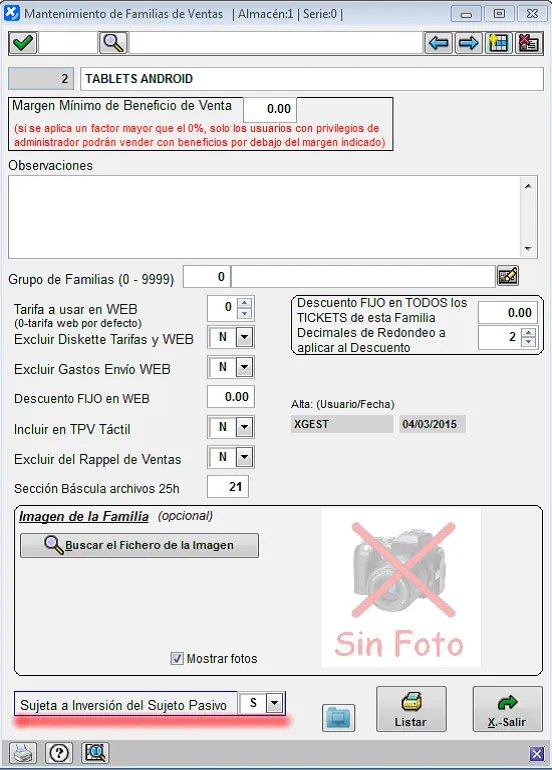 Debemos configurar los artículos o sus familias de ventas indicando los que están sujetos a la Inversión del Sujeto Pasivo como se explica más adelante en este documento.