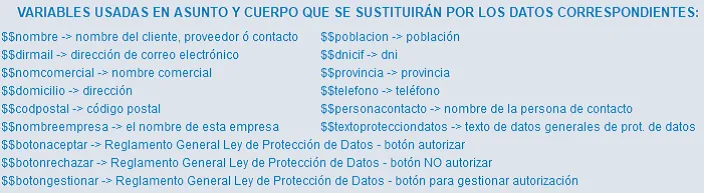 Además, podremos incluir los botones de Autorizar e-mail, NO Autorizar e-mail y Manejar la Suscripción en todas las circulares que diseñemos para enviar simplemente incluyendo en su diseño las nuevas variables $$botonaceptar, $$botonrechazar y $$botongestionar. No solo sirve para los mail de solicitud de aceptación de envío: